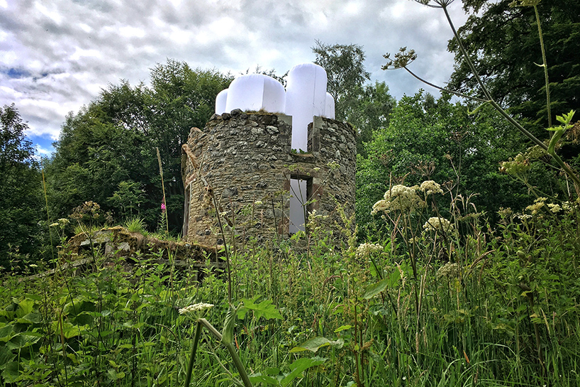 messam把3個充氣雕塑作品放在了景點mellerstain house里的borders sculpture park公園,有的和建筑融為一體,有的裝點著周圍的景觀。這3個充氣雕塑都呈現出純白色,它們取代了原本打算用來裝飾花園的大理石雕像,建立了過去和現在之間的對話。