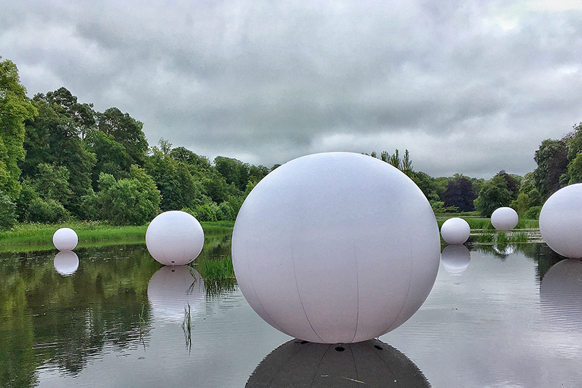 作品scattered包括一系列漂浮在湖面上的不透明球體