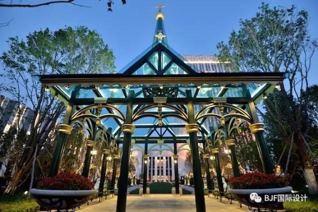 源自哈爾濱尼古拉教堂的涼亭設計,引用其古樸典雅的建筑風格,同時個入狩獵雕塑群,平時作為休憩場作,亦可作為戶外草坪婚禮的理想場所。
