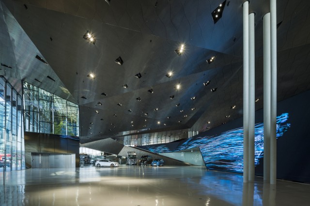 位于首爾的新現(xiàn)代汽車品牌體驗(yàn)館已經(jīng)與GDSI系統(tǒng)實(shí)現(xiàn)了一致。建筑概念在景觀、垂直綠化、天際線形狀上運(yùn)用簡潔的元素,并應(yīng)用手工模塊化原則。由開放透明的、簡單而清晰的結(jié)構(gòu),這三種設(shè)計(jì)元素占據(jù)了汽車工作室的空間但不影響景色進(jìn)入巨大的空間單元,這樣可以從模擬城市或自然景觀的不同角度來展示汽車,游客可以自由漫步其中。