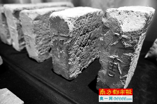 浙江臨安市政府大院考古發(fā)掘的帶有“上”“大唐”字樣的古磚。
