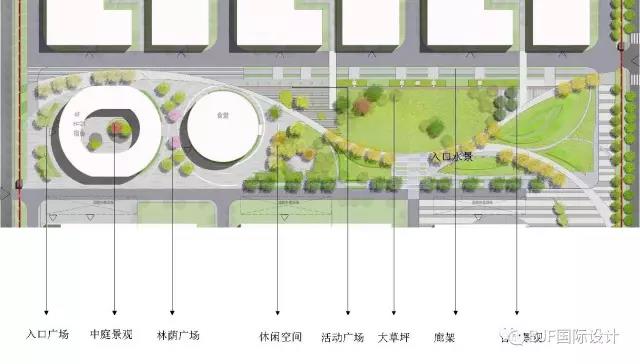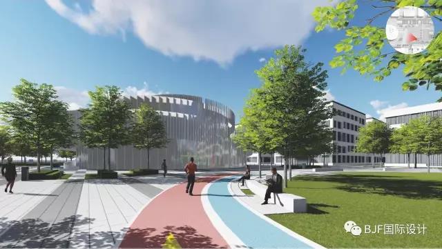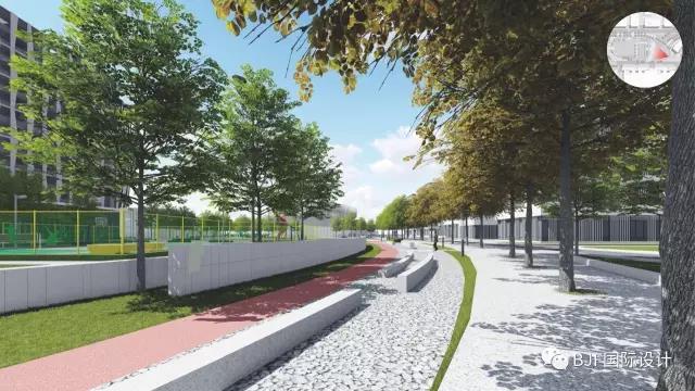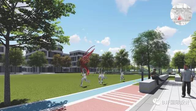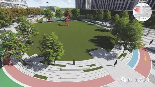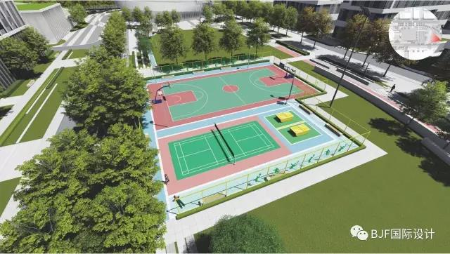 B區(qū)運動區(qū)主要體現(xiàn)健康、運動主題,設(shè)計了環(huán)形跑道、籃球場、網(wǎng)球場、乒乓球臺等實用而又普及率高運動設(shè)施,為下班后的人們提供一個運動空間。