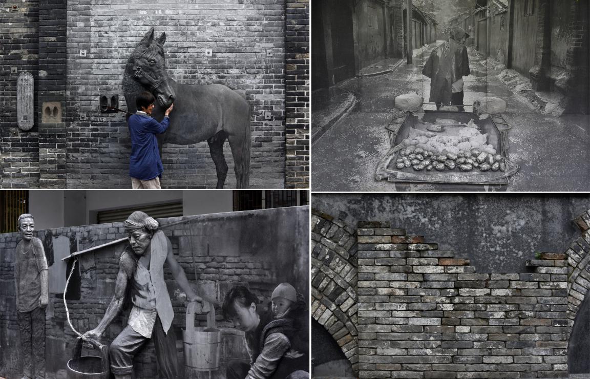 分為:景觀互動化、老材料裝置化、材料科技化。井巷子中設計了一些互動的細節,以往的老菜民騎著三輪車、拴馬樁等等互動景觀做得不錯,即景觀互動化;還保留了以前一部分老磚墻,磚、石頭、甚至一些小物件,成為承載記憶的點,為老材料裝置化。