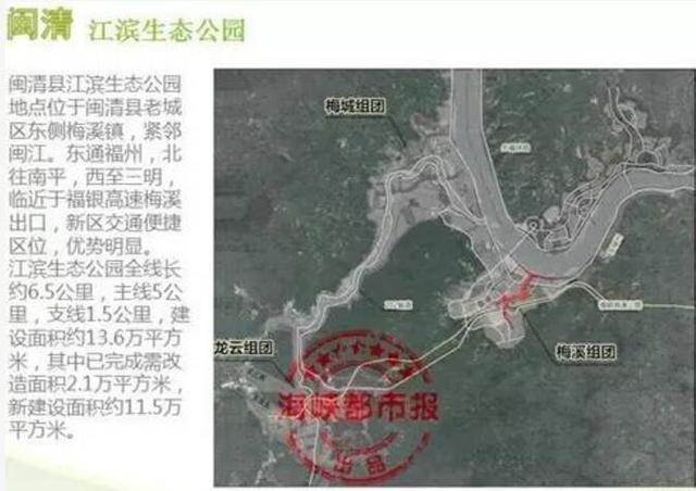 位于閩清縣老城區東側梅溪鎮,緊鄰閩江。公園全線長約6.5公里,其中主線5公里,支線1.5公里。