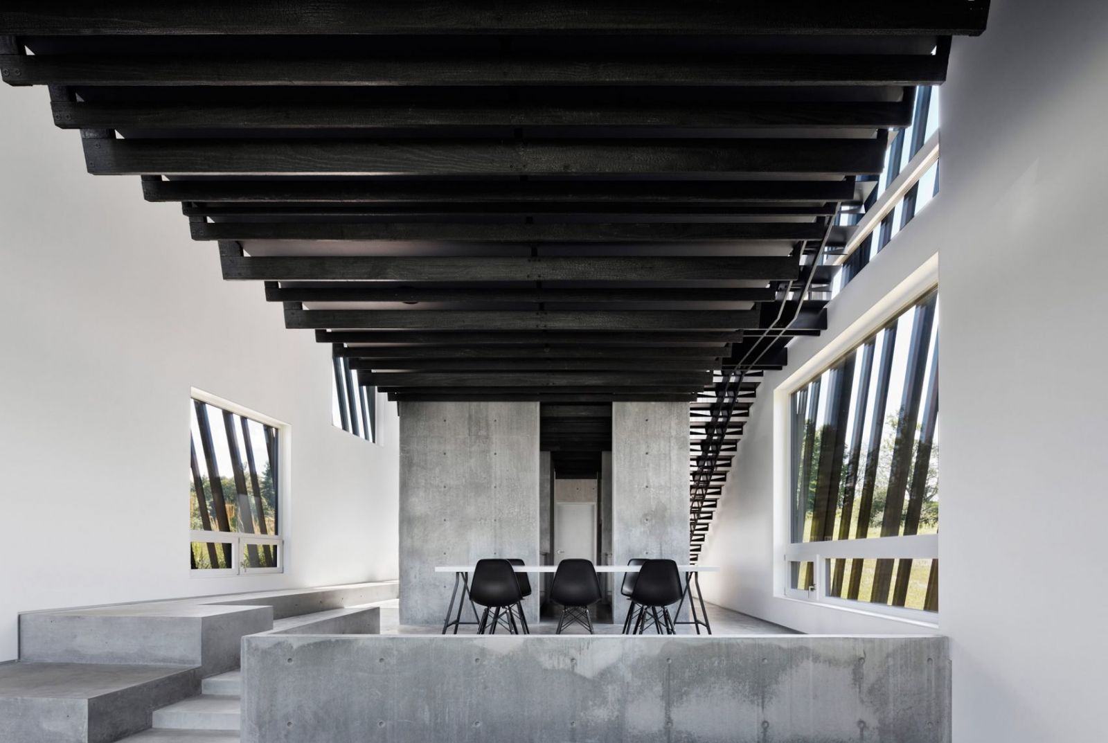 這些空間是大規(guī)模采用了硬,粗糙的材料,暴露的混凝土和燒制的木材,內(nèi)外都是如此。