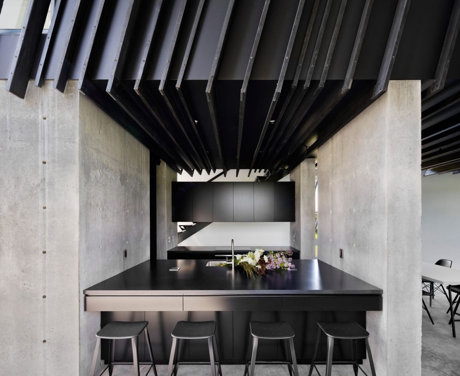 兩層住宅由長(zhǎng)的線性體積組成,嵌套在較大,較寬的黑木框架內(nèi)。