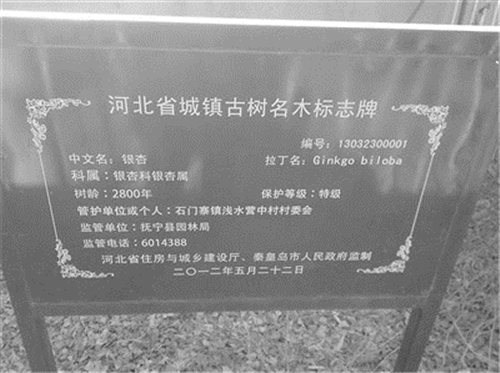 河北省城鎮(zhèn)古樹名木標(biāo)志牌