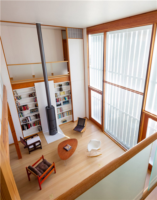建筑師說:“兩層樓的遮陽篷設計是為了通過朝南的窗戶對太陽能進行反應,同時實現良好的采光,并使建筑物在業主缺席時能夠安全地關閉一段時間。”