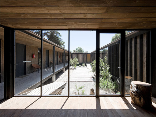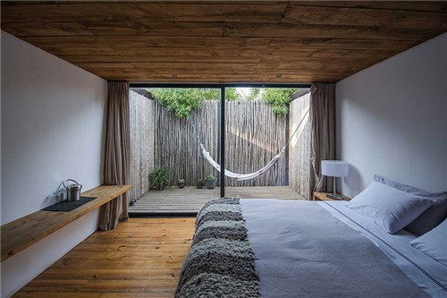 在建設初期,WMR Arquitectos將Surazo酒店周邊的一排數木也考慮在設計范圍之內。圍繞這些樹木,創建 4×4米的模塊,創建庭院將內部與外部連接起來。面向海灘,接待處和餐廳通過過道連接到私人區域。包括十個私人房間和兩個雙層床區,酒店還設有一個游泳池,以及桑拿浴室、熱水浴池、閱讀區和燒烤區。