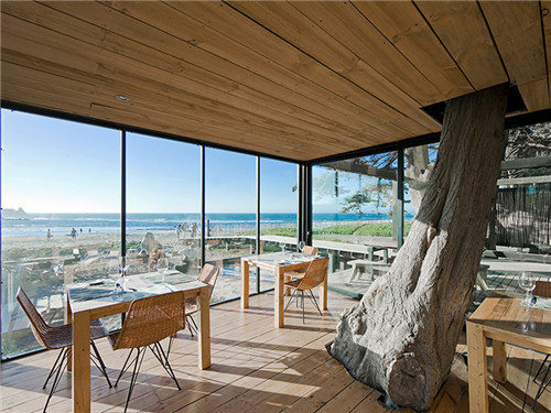 設計中主要使用原木和玻璃,結構輕巧靈活。在2010年海嘯之后,這個結構不得不被重建。今天,酒店已經獲得了不同的色調,木材的顏色現在具有本正的美麗。