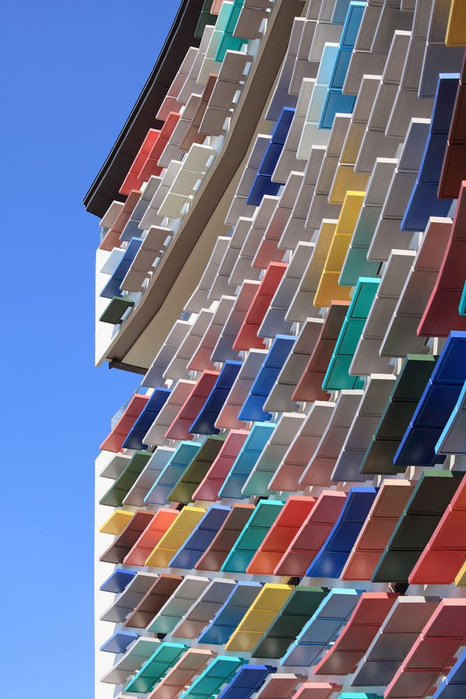 度假村的每個公寓單元通過一個馬蹄鐵形彎曲的走廊連接。這種類型的走廊由于人工照明和通風不良,經常會產生不良的環境。出于這個原因,選擇了一種“陽臺通道”式走廊,它更能提供自然光和相當充足的通風。曲線走廊也提供了一種更舒適的感覺。