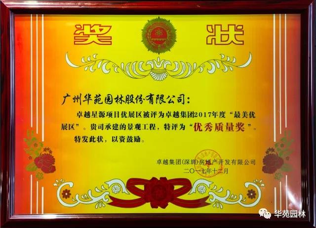 近日,華苑園林承建的卓越星源項目榮獲“卓越集團”授予的“優(yōu)秀質量獎”。自合作以來,華苑園林憑借穩(wěn)定的工程質量及良好的配合度,贏得甲方的一致肯定,榮獲“優(yōu)秀供應商”榮譽稱號。