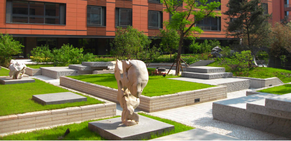 王達(dá):景觀與建筑的融合也是我一直以來的想法。我認(rèn)為由景觀公司來做建筑,是件很有意義的事情。我也考察過很多案例,去拜訪過枡野俊明,他是一名僧人,也是日本著名的造園大師之一,更是當(dāng)代日本枯山水的主要代表人物。他的作品追求自然清新,建筑融在景觀中。所以我也希望以后我們的甲方景觀委托我們做后,建筑也委托給我們做,由建王來呈現(xiàn)一體化的自然風(fēng)格,這以后可能是我們的重點方向。像美術(shù)館、度假村之類的建筑等完全可以這么做。我們可以把建筑做在下面不破壞地面生態(tài)環(huán)境,如果建筑破壞了地面的植被,我們一定要在屋頂或墻面,彌補同等的植物。