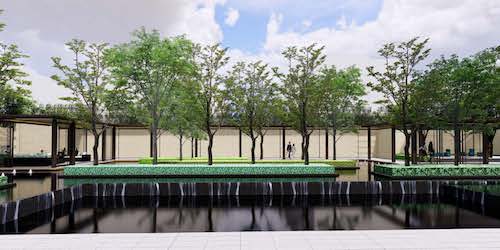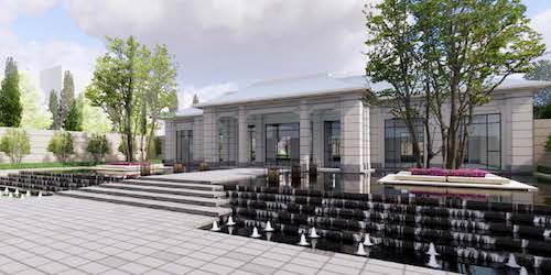 ▲售樓處前場秉承軸線對稱的序列(Holi河貍-景觀攝影)