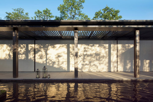 池邊設(shè)置的休憩亭,是整個(gè)后場園林場景中打造的生活空間,也是觀賞烏桕林的極佳視角。角落的洽談空間,與水池邊的空間形成反差,營造了一種安靜私密的氛圍。