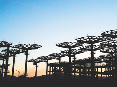 記者看到,中國館主體結構已經建設完畢,半環(huán)形的整體輪廓,像一柄溫潤的玉如意舒展于青山綠水間,兩端微微翹起,猶如鳥兒展翅。在中國館東側,由94把“花傘”簇擁而成的“鋼鐵花海”也逐步成型,這是另一個核心場館國際館。其中,中國館承載錦繡園藝情、如意中國夢;國際館撐起一把把創(chuàng)意飛揚的花傘;生活體驗館營造生動的園藝創(chuàng)意集市;植物館呈現(xiàn)一個色彩斑斕的植物世界;在媯汭湖景區(qū),演藝中心則宛如一只彩蝶流連于山水間。