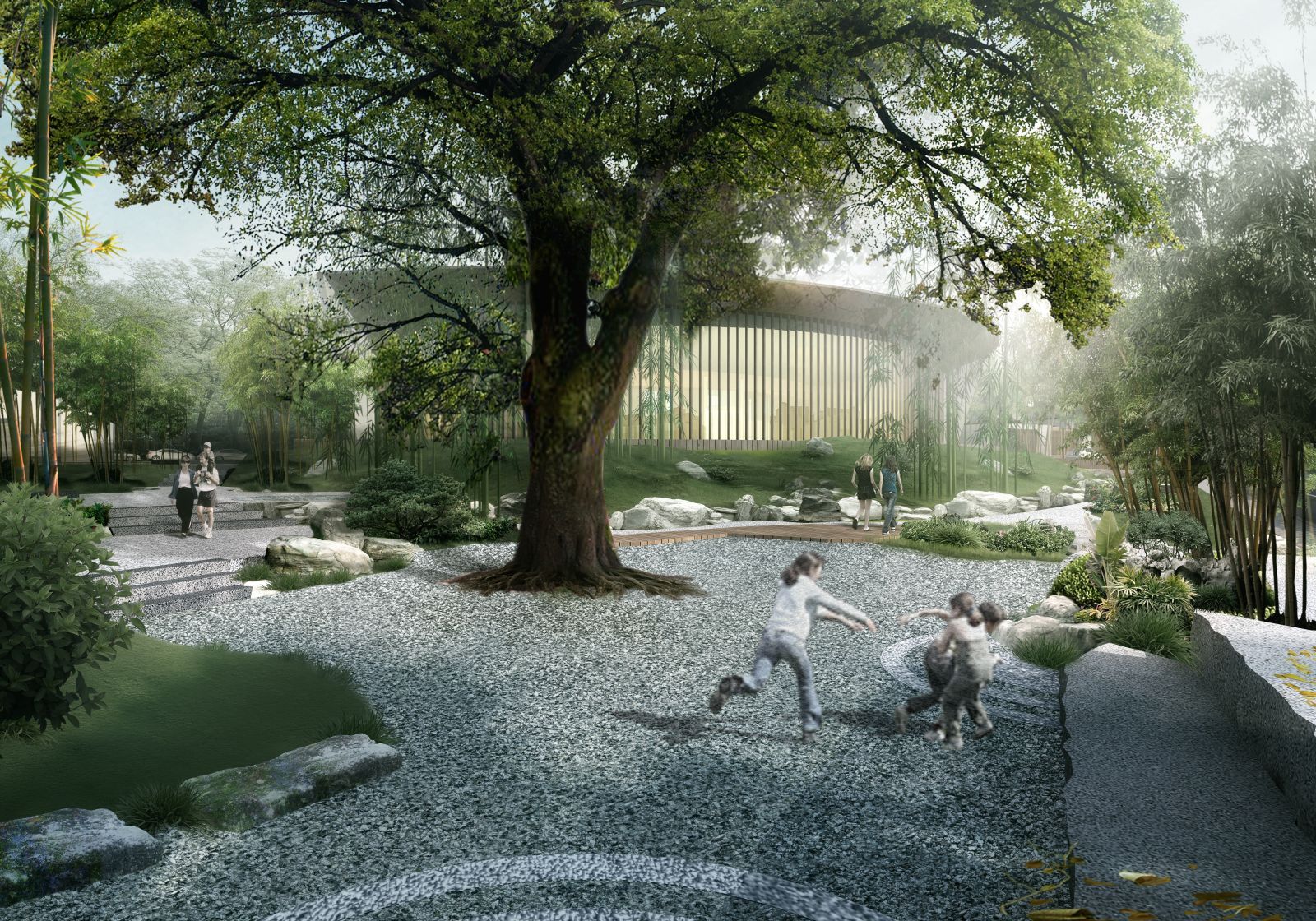 以古典園林為靈魂,融合現代造園手法,結合自然生態環境,詮釋現代新東方自然式園林。
