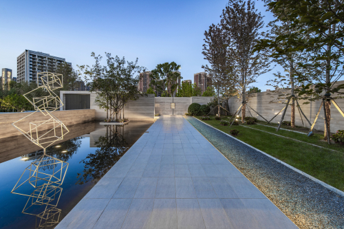 由北京凱盛上景景觀規(guī)劃設(shè)計(jì)有限公司路媛主創(chuàng)設(shè)計(jì)的“天瑞宸章示范區(qū)”項(xiàng)目,設(shè)計(jì)團(tuán)隊(duì)通過(guò)墻體的縱橫穿插進(jìn)行空間的轉(zhuǎn)換,圍合出空間的神韻,訴說(shuō)空間光影的變化;精心布置展陳空間,設(shè)置對(duì)景雕塑,呈現(xiàn)出大氣、典雅的空間氣質(zhì)。以高端酒店會(huì)所的服務(wù)精神為內(nèi)核,詮釋另類(lèi)空間花園,打造一個(gè)貼合現(xiàn)代人生活方式的府系花園環(huán)境;整體空間大氣穩(wěn)重的同時(shí),通過(guò)對(duì)空間的細(xì)節(jié)推敲,材質(zhì)的把握,處處體現(xiàn)細(xì)致周到的園林設(shè)計(jì)考量。