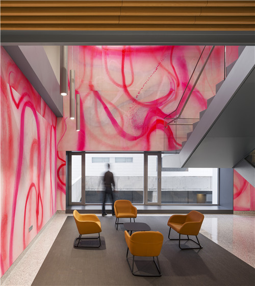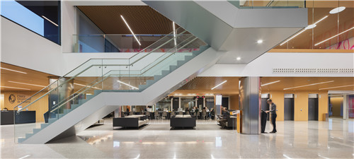 通過一個中心的中庭和一些人行道,確保了不同區域的直接交流和空間關系,并且表達出了這棟樓不同公共區域的特征。