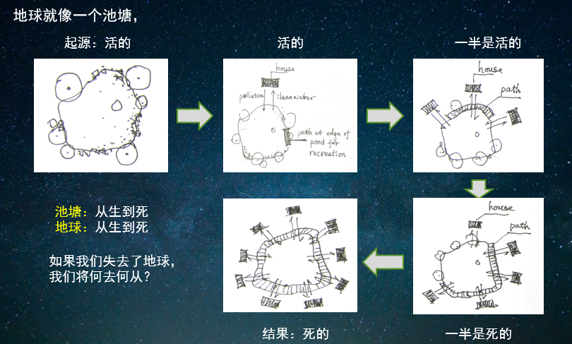 ▲把地球比作一個(gè)從“生”至“死”的小池塘
