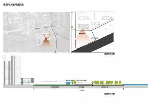 項目濱太湖是一個重要的資源信息,但是由于場地距離和高差的原因,基地濱湖卻不能見湖是場地的痛點。