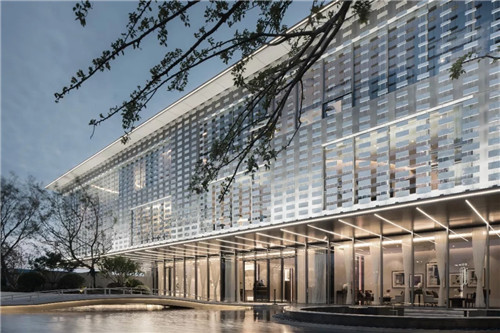 通過參數化的角度處理,帶來了靜態裝置動態化的特殊體驗,通過控制局部區域的穿透率達到視覺漸變的效果,不同視覺角度會有不同的穿透率,從而達到古典園林移步異景的效果。