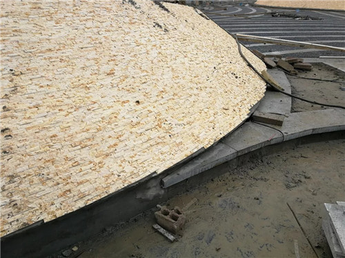 施工過程中異形樹池外壁底部的小斜角無法切割鋪貼,計劃嘗試采用膠泥銹粉調和的做法,以期彌補小斜角石材無法切割的缺憾。