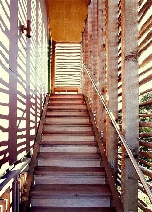 有部分的樹屋是依松樹而建的,樹干會直接穿過屋里,室內彌漫淡淡的松香。松樹會分泌對人體有利的物質,真是住樹屋也不忘養生。
