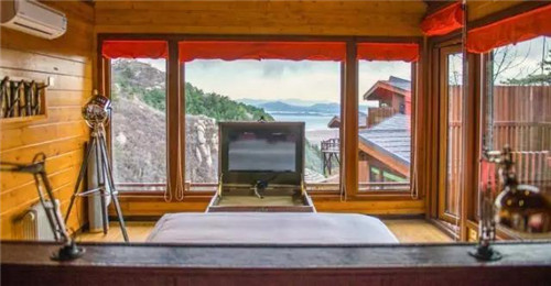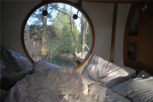 而且這里面的窗戶看出去景色也很不錯,天花板跟墻壁上都有窗口。別致的圓形視野,襯得像是一幅裝飾畫。睡在這樣的窗邊感覺也是很舒服,白天陽光照進來,一室溫暖。夜里躺在床上抬頭就是星空。