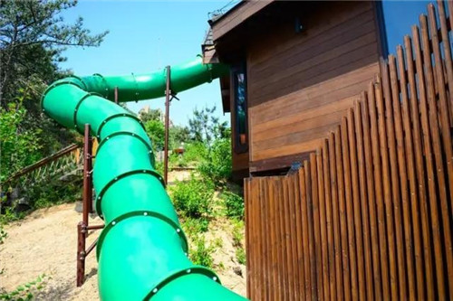 一些主題樹屋后面還設計有直達地面的滑梯!這樣的裝置也很難不讓大人變回大小孩啊。