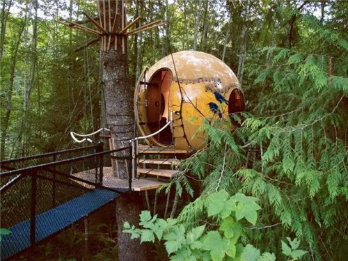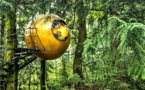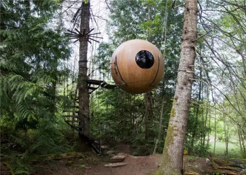 加拿大的Free Spirit Spheres球形樹屋,名字翻譯過來也很帶勁,自由精神。還有重點是這樹屋造型,是不是很有未來感?很科幻很別致很與眾不同?