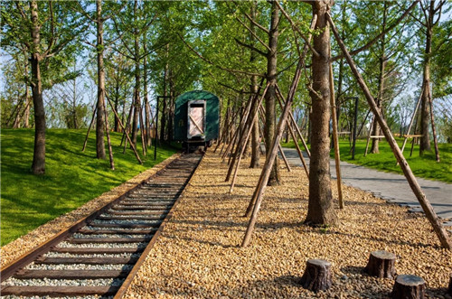 成都沙河源公園,位于大西南建材城舊址,大量遺留的鐵軌及存儲木材的廠房被作為設計要素加以提煉。同時場地由府河、沙河環抱形成雙河環抱、四面環水的河心島形態,水質優良,植被茂密。這里也位于錦江綠道規劃帶中,成都沙河源公園的建立,形成了全新的、連續的城市綠廊。