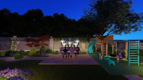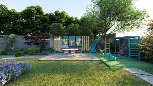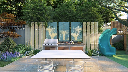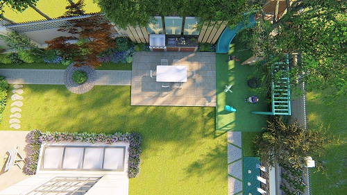 這個空間區別于兒童空間及安靜空間,首先party的機會比較少,其實就算很少的party聚會,在設計也要考慮這個空間需要比較大的尺度問題。同樣大尺度的空間預留會影響比較大,因為這樣會影響整個庭院空間的布局及視覺關系。因此這個空間設計時原則是滿足功能是首要,因為沒有功能的空間是無趣的,其次我們會在視線關系及景觀元素結合上讓此空間變化景觀空間,就像城市的廣場及社區廣場。