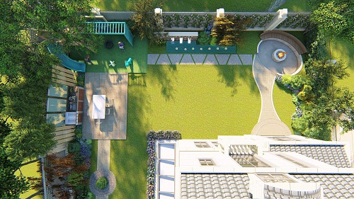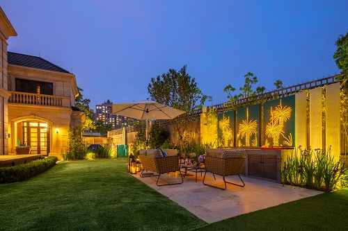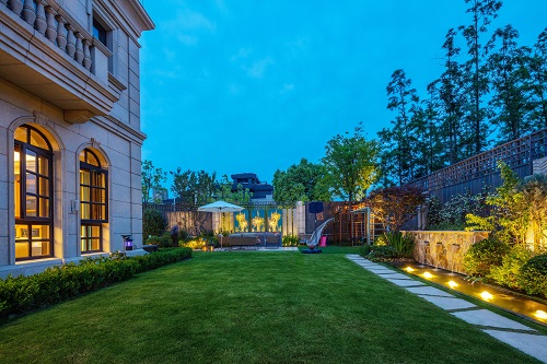 本案的建筑風格為典雅端莊的歐式新古典,在庭院設計的風格上,為體現現代人的特征,追求精神層面的內涵,我們不追求形式,但我們可以私人定制。設計團隊從建筑本身提煉設計語言,同時簡化裝飾,讓庭院空間表達更簡潔溫馨,使得簡潔中的美麗穿透四季的變化,在庭院四季生活中演繹不同的生活場景。