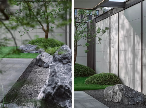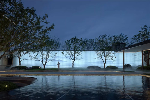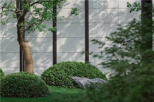 石塊、植被與照壁錯落排布,“以壁為紙,以石為繪”,將光感,色澤,質地完美結合,行人穿梭其中,共享山水盛宴。