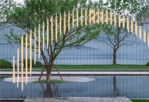穿琳瑯漫步,簫笙之浪層層,其間水中央孤樹屹立,如海上饋贈,天水聚寶,漫步間似有醉意蕩漾。