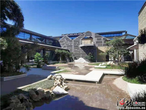 園林藝術館是第三屆河北省園林博覽會主展館,位于南入口軸線上,形為臺,外為城,內圍園。在滿足基本展覽空間的同時,于庭院中將南北園林、古今景觀碰撞結合,呼應展示館“外為城,內圍園”的立意。