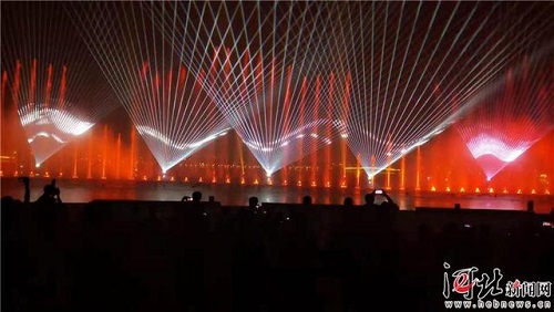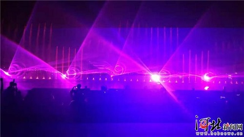 8月27日晚,大型水景秀《千年邢襄一園夢》在邢臺園博園精彩上演。