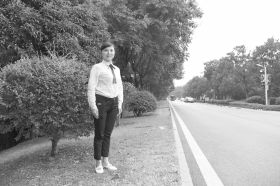 2019年9月18日,長(zhǎng)沙橘子洲,賀婷在當(dāng)年差不多的位置上再次拍照留影。圖/記者謝長(zhǎng)貴