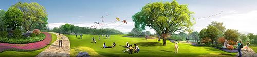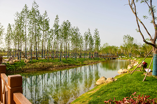 項目主要以生態修復為重中之重,首要完成整體基底修復及生態復綠,適量融入生態公園的休閑觀賞功能及配套,打造舒適、芬芳的公園環境,同時營造植物特色,形成濱河新區的靚麗門戶節點。