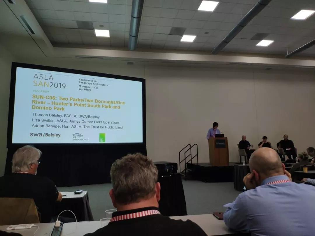在教育論壇(Education Sessions)版塊,來自LEED綠色協會(LEED Green Associate)和埃斯特拉土地規劃公司(Estrada Land Planning)的設計師們針對在圣地亞哥當地進行的實踐,發表了題為歷史和當代利用:圣地亞哥巴爾博亞公園面臨的挑戰(Historic Preservation and Contemporary Use: Challenges in Balboa Park San Diego)的主題演講,演講嘉賓認為景觀設計師時常處于廣泛的利益競爭之中,在為期數年的針對圣地亞哥巴爾博亞公園這一國家級地標式街區的設計改造里也是如此。設計師以巴爾博亞公園中的巴拿馬廣場為例,同參會者分享了如何平衡相關的利益競爭,經過多年的爭議而最終競標。獲得ASLA專業獎的獵人角南公園和多米諾公園的SWA與James Corner Operation設計團隊,共同完成了名為兩個公園/兩個自治市鎮/一條河——獵人角南公園和多米諾公園(Two Parks/Two Boroughs/One River: Hunter’s Point South Park and Domino Park)的主題演講,作為21世紀濱水公園的典范,獵人角南公園和多米諾公園從工業遺跡中誕生,都面臨著公平、士紳化和彈性設計的問題,設計師們分享了他們應對這些復雜挑戰的策略,以及促進社區參與的成功經驗。來自斯托斯景觀都市主義(Stoss Landscape Urbanism)的克里斯·里德(Chris Reed),來自澤德事務所(Studio Zewde)的薩拉·澤德(Sara Zewde),和來自灰度協作(Grayscale Collaborative)/哈佛研究生院(GSD)的斯蒂芬·格雷(Stephen Grey),就美國景觀實踐中黑人社區面臨的挑戰,發表了題為身份和設計(Culture, Identity, and Design)的主題演講,設計師們從如何認識那些塑造了過去的景觀并將塑造未來景觀的復雜歷史、文化傳統、身份和人口的方面出發,結合在費城、波士頓和圣路易斯進行的項目實踐,探討如何在設計過程中創造性的引入代表性和公平性,并使其成為工作的成果。