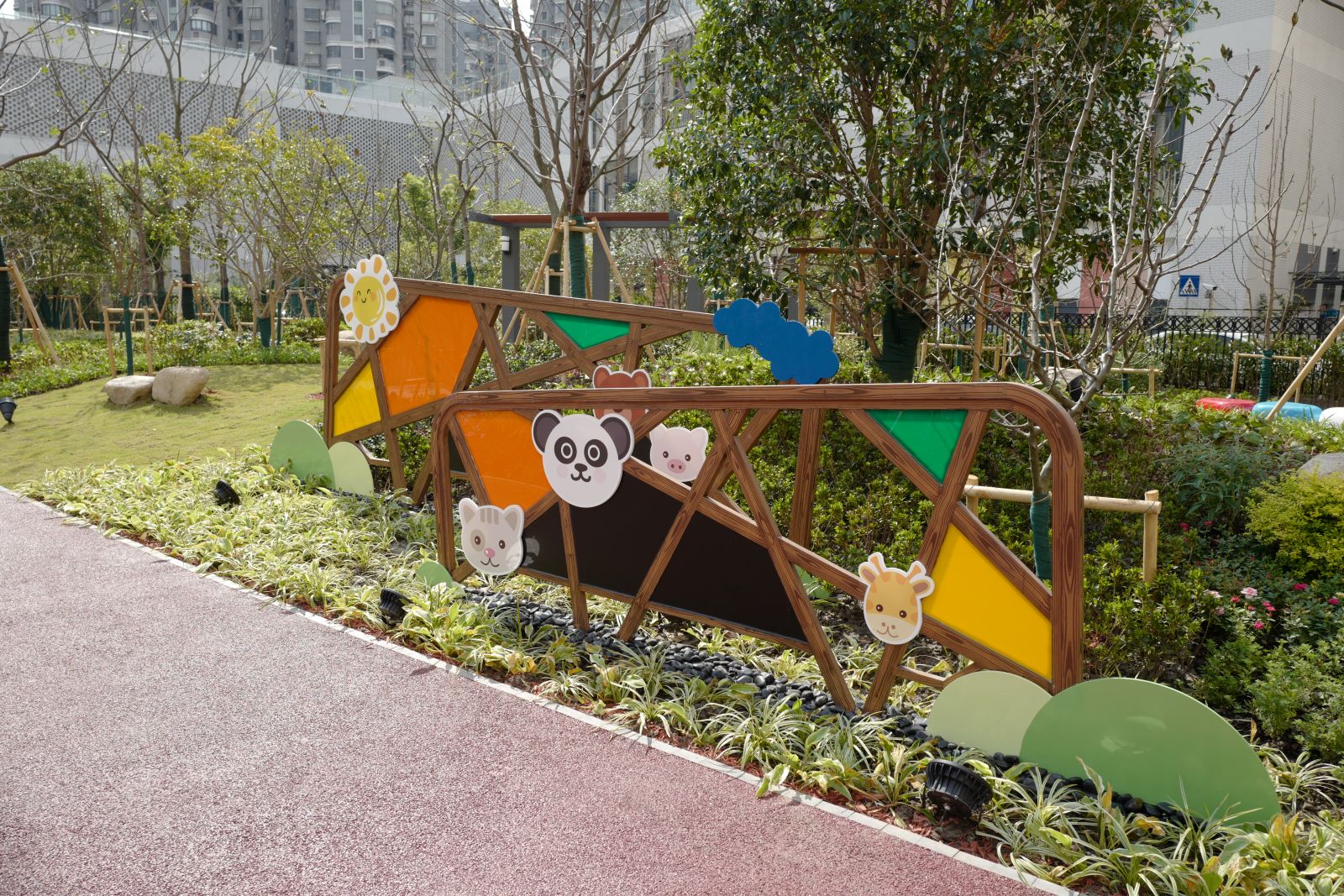 虹口區通州路童夢園街心花園是結合周邊風貌、地域特點營建具有虹口特色、富有童趣和兼具植物科普功能的街心花園,由于位置緊鄰幼兒園,植物配置上選了無刺無污染無安全隱患的植物品種和一部分奇藝花型的園藝八仙花、百子蓮等,結合常綠樹、落葉喬木、花灌木、色葉植物等各類植物,通過設施植物銘牌,起到科普宣傳的作用;主園路中設計英文字母和阿拉伯數字、黃綠漸變馬賽克貼面的特色坐凳以及景墻小品,提升整個街心花園的趣味互動性和科普性。