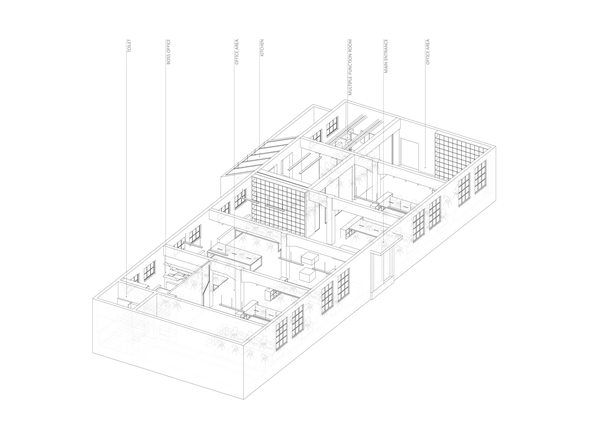 改造后的辦公室軸測圖Axonometric drawing of the office after renovation