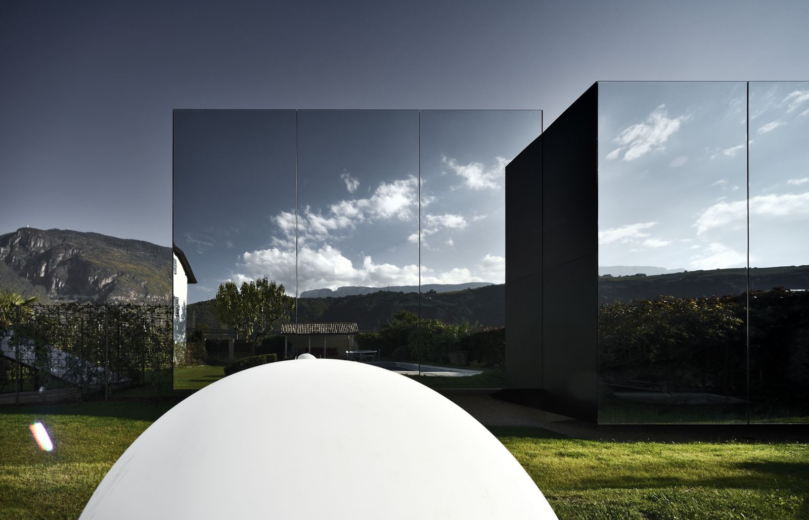 The Mirror Houses are a pair of holiday homes, set in the marvellous surroundings of the South Tyrolean Dolomites, amidst a beautiful scenery of apple trees, just outside the city of Bolzano. They were designed by architect Peter Pichler. The Mirror houses offer a unique chance to spend a beautiful vacation surrounded by contemporary architecture of the highest standards and the most astonishing Landscape and beauty nature has to offer.