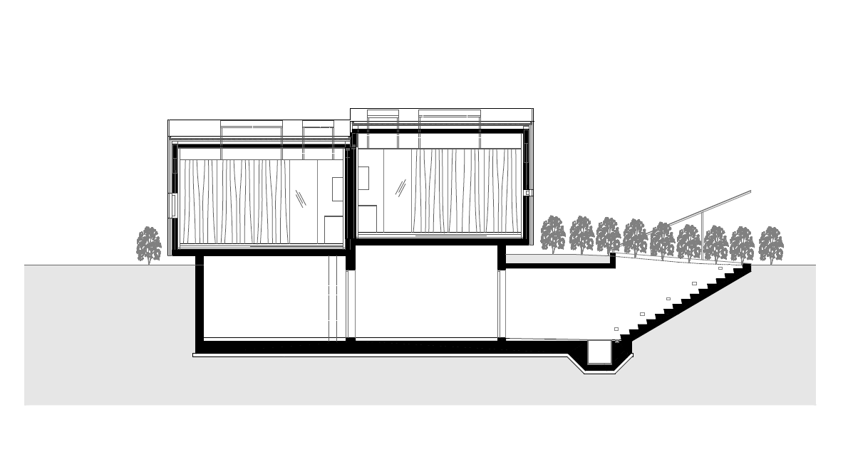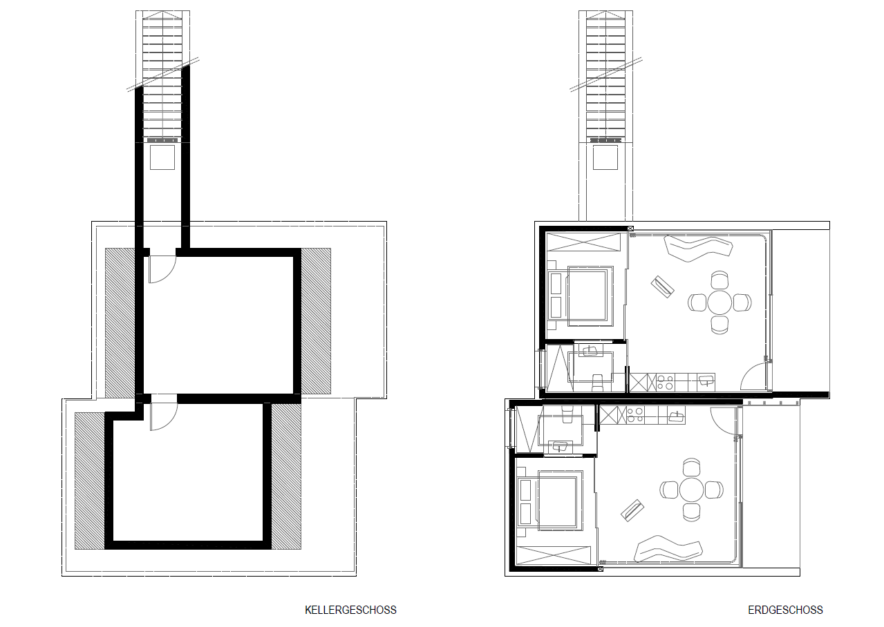 The new structure is oriented towards east with their private garden and an autonomous access and parking for the guests. Each unit contains a kitchen / living room as well as a bath- and bedroom with big skylights that open to allow natural light and ventilation. A small basement serves for temporary storage. The projects initial volume is split in 2 units that are slightly shifted in height and length in order to loosening the entire structure and articulating each unit.