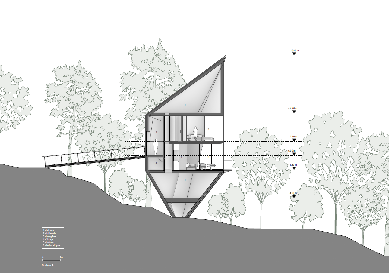 The project is conceived as a "slow down"- form of tourism where nature and the integration of architecture in it plays a primary role. "We believe that the future of tourism is based on the relationship of the human being with nature. Well integrated, sustainable architecture can amplify this relationship, nothing else is needed".