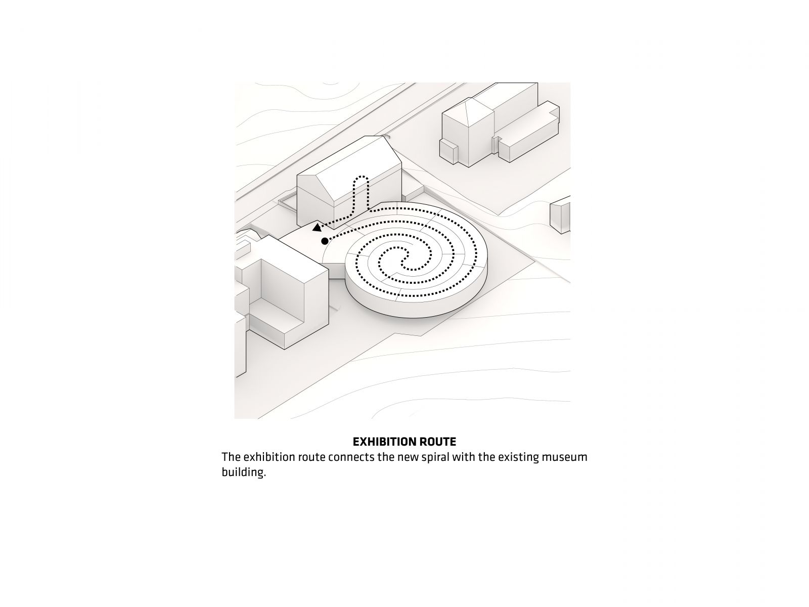 展覽路線將新螺旋線與現(xiàn)有博物館建筑連接起來。