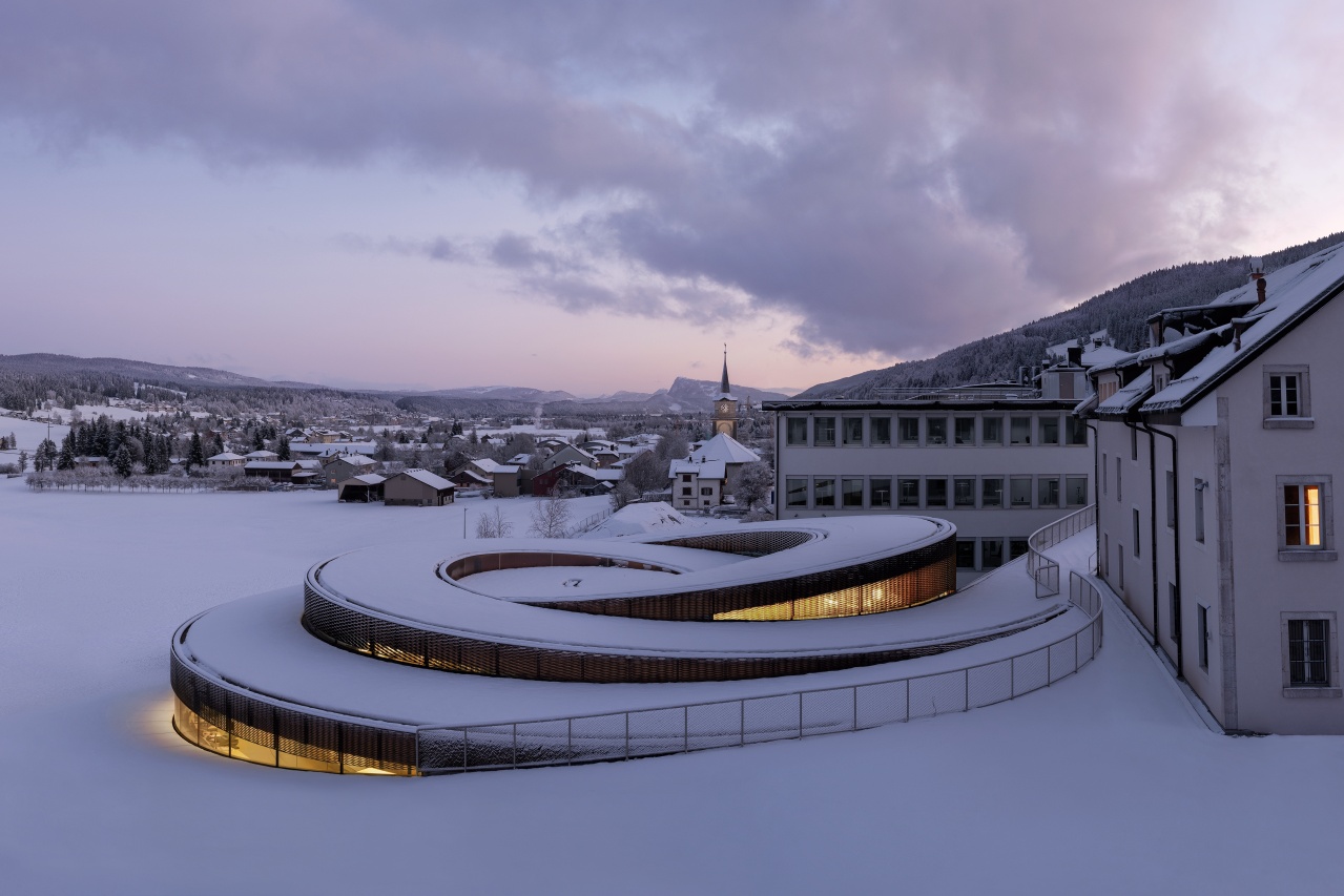 瑞士螺旋博物館MUSéE ATELIER AUDEMARS PIGUET 是Bjarke Ingels Group 建筑師事務所(BIG) 專門為瑞士奢侈表商愛彼(Audemars Piguet)量身打造的。項目坐落在名表勝地汝拉溪谷,布拉蘇絲村落的歷史建筑群中。布拉蘇絲村落的制表歷史可追溯到數(shù)百年前,制表傳統(tǒng)已深深地融入在山谷的自然和文化脈絡之中。博物館設計突出家族企業(yè)獨立精神,多年來一直保持自主權。項目呈現(xiàn)出愛彼特有的內在張力,工藝和設計的共鳴體現(xiàn)在整個設計過程當中:要打破規(guī)則,必須首先掌握規(guī)則。