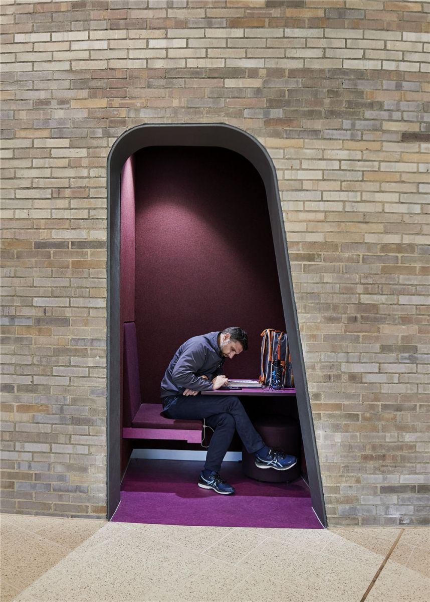 學習空間分組成一個個小團體,并由非正式學習社區提供支持。這些小團體將建筑分解成更小、更隱密的環境,學生可在此找到獨處的靜謐空間。