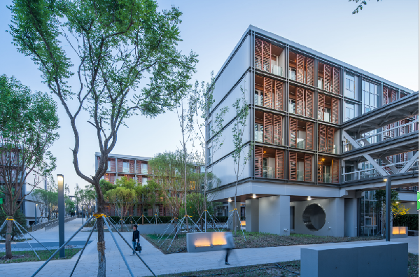 清華院負(fù)責(zé)設(shè)計(jì)其中的周轉(zhuǎn)用房及生活服務(wù)用房組團(tuán),項(xiàng)目包括多種套型的周轉(zhuǎn)公寓、飲食中心、健身中心及無人超市等配套服務(wù)設(shè)施,應(yīng)對“居住建筑融入城市、回應(yīng)特有場地環(huán)境、滿足快速建造訴求”三大挑戰(zhàn);通過土地混合利用、建筑底層架空、標(biāo)準(zhǔn)化構(gòu)件設(shè)計(jì)等技術(shù)措施,使項(xiàng)目很好地滿足了功能需求、保障了工程質(zhì)量并適應(yīng)了環(huán)境特征,從而成為雄安啟動區(qū)建設(shè)的一個(gè)標(biāo)桿,在社會、經(jīng)濟(jì)、環(huán)境三個(gè)方面都取得了顯著的效益。